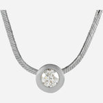 The diamond is elegantly set in a bezel setting, providing a secure and modern frame that enhances durability while showcasing the stone’s natural brilliance. The polished finish of the white gold complements the diamond’s radiance, creating a harmonious balance of understated elegance and refined shine.