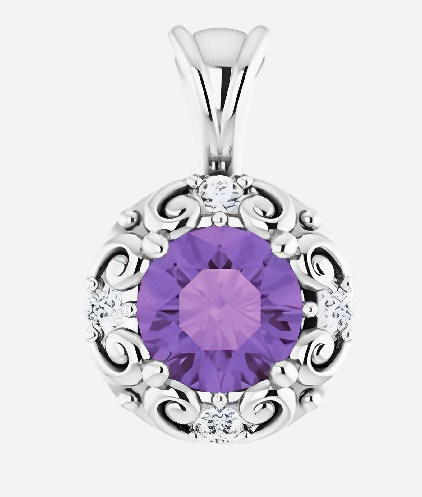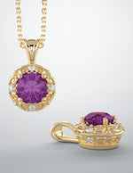 14kt yellow gold necklace with 6mm amethyst & 1/8ctw diamonds